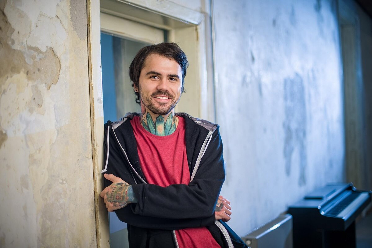 Újhelyi Endre bemutatkozásánál nem tudok rendhagyóbbat. A februárban végzett srác életének főbb állomásait a felsőtestét beborító színes, festményszerű tetoválásaiból ismertem meg. A két karja olyan, mint egy képeskönyv: többek között kedvenc mesefigurája, Nils Holgersson repül rajta Márton lúdon, a tini korszakban imádott svéd zenekar albumának figurái, egy jegesmedve és egy pingvin ölelik egymást, láttam egy süllyedő kalózhajót, amelynek zászlaján egy rövidítés: TWD (hamarosan kiderül, hogy mit jelent). A rajzokból megismerhettem a pusztaszabolcsi szülői ház kutyáját, Somát, illetve Ferdinándot. Utóbbi azonban kakas testbe született, de szegény egész életében azt kukorékolhatta, hogy én kérem kutya vagyok, hiszen házat őrzök, én is a kapuban várom a gazdáimat, amikor hazaérnek, és hagyom, sőt, igénylem, hogy simogassanak... Ezek után az űrben úszó bálna jelentésére már nem mertem rákérdezni. (Nyugi, kiderül az is!)