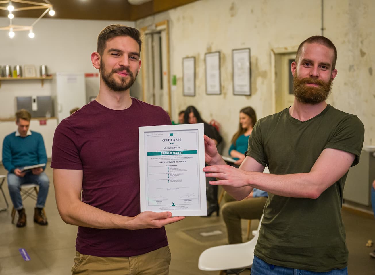 Szerencsére nagyon gyorsan találtam állást, azt hiszem, nagyjából másfél hónap alatt. Egy közepes méretű digitális banki szoftvercégnél helyezkedtem el, azóta is ott dolgozom. A bootcamp után részt vettem a Green Fox Alumni Buddy programjában, ami olyan jól sikerült, hogy nemcsak egy új barátságra, de az első fejlesztői munkahelyemre is rátaláltam a mentorom segítségével. :)